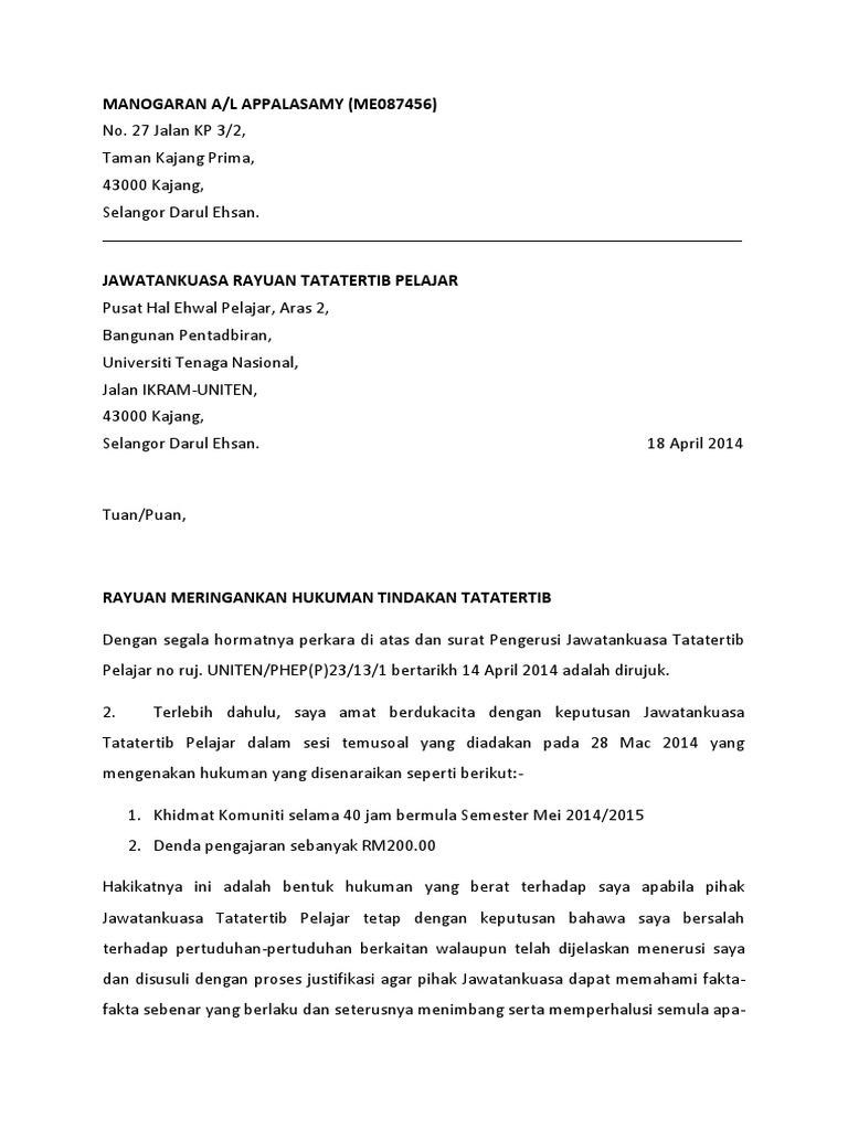 Surat Rayuan Hukuman Tatatertib Pelajar Pdf